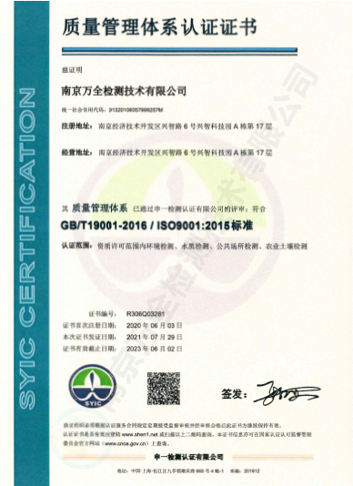 南京萬全檢測技術(shù)有限公司,籌建于2013年1月,注冊資金500萬,公司坐落于南京經(jīng)濟(jì)技術(shù)開發(fā)區(qū)興智路6號(hào)興智科技園A棟17層,實(shí)驗(yàn)室占地面積1750余平米。公司是一家獲得省級CMA計(jì)量認(rèn)證資質(zhì)、具有獨(dú)立法人、政府認(rèn)可的綜合性、專業(yè)性的檢測機(jī)構(gòu)。環(huán)境監(jiān)測業(yè)務(wù)是其重要的檢測業(yè)務(wù)之一,目前已獲得省級計(jì)量資格認(rèn)可項(xiàng)目314項(xiàng),設(shè)備齊全,具有較強(qiáng)的技術(shù)能力。